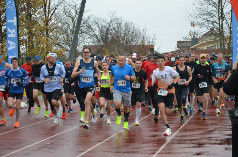 Der Karlsbader Volkslauf steht nach mehr als 3 Jahrzehnten bei vielen Läuferinnen und Läufern fest im Kalender – und so waren erneut zahlreiche zum Teil alt bekannte Namen in den Startlisten zu finden. Mehr als 800 Meldungen lagen vor – davon gut die Hälfte in den Nachwuchsläufen – dem 2km Sparkassen-Schülerlauf und dem 400m Bambinilauf, der im vergangenen Jahr Premiere feierte. Bürgermeister Björn Kornmüller lobte die gute Organisation und die trotz Regen zahlreich gekommenen Läuferinnen und Läufer. Mit Blick auf die lange Schlange bei der Startnummernausgabe schickte er den 10km-Lauf mit knapp 15 Minuten Verspätung auf die Strecke. Nicht alle der gut 230 gemeldeten Teilnehmer sind auch angetreten – am Ende waren mit 201 Finishern erstmals wieder mehr als 200 Läuferinnen und Läufer am Start. Durchsetzen konnte sich in diesem Feld in 36:34 Roland Golderer (SV Oberkollbach), dem damit die Verteidigung des Vorjahressieges gelang. Hinter ihm kämpften Patrick Hilpert (FCO SkyRunners) und Nils Wallinger (TRT Remchingen) bis zuletzt um die Podestplätze. Nils konnte sich knapp mit 36:59 durchsetzen.
